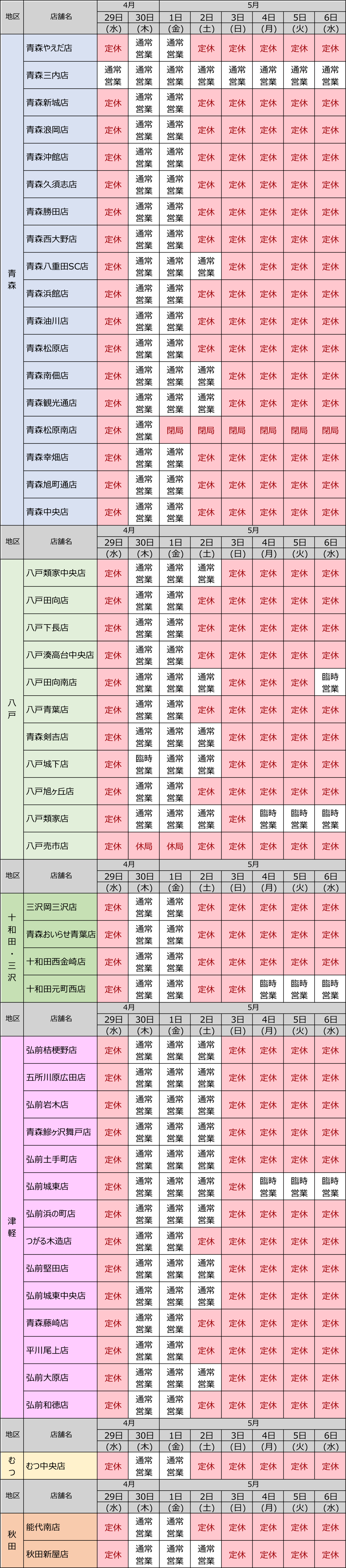 ハッピー調剤薬局各店舗のゴールデンウィークの営業日は下記の通りです。